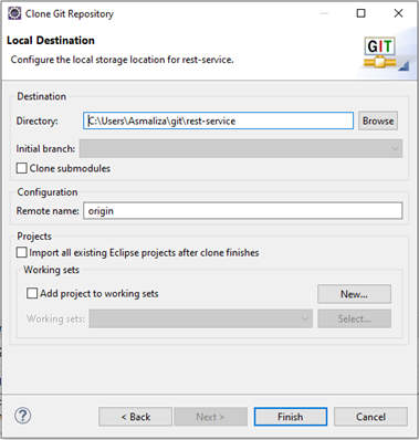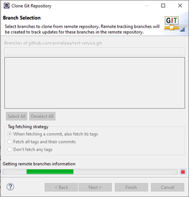 1. First, we need to clone/add the newly created repository into Eclipse.