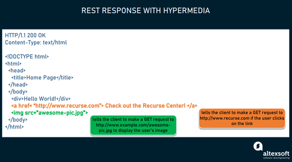 In response, the server sends not the sought-for resource itself, but its representation – a machine-readable description of its current state. The same resource can be represented in different formats, but the most popular ones are XML and JSON.